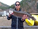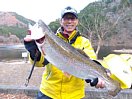 12月4日(水) 水位が上がり、足場の悪い場所がありますので、長靴・ウエーダーを持参すると便利です。 釣果の写真は、事務所前から大曲付近でボトム(ルアー)での釣果です。