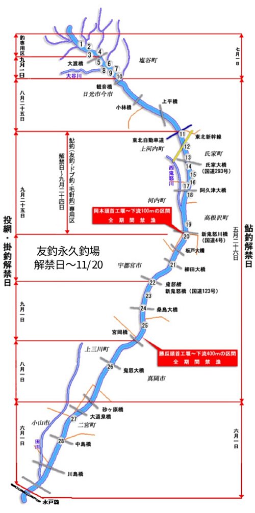 鬼怒川本流放流ポイントマップ |